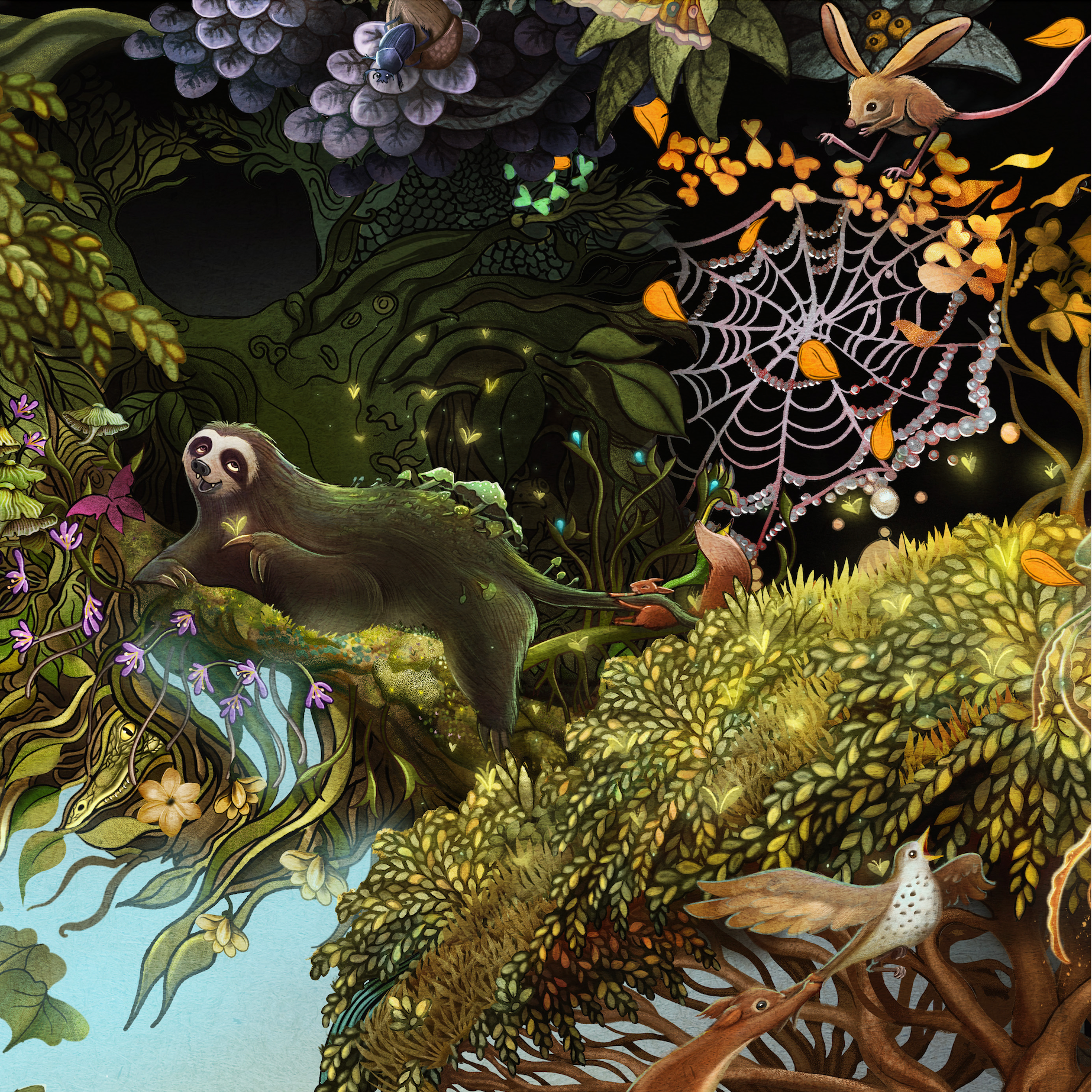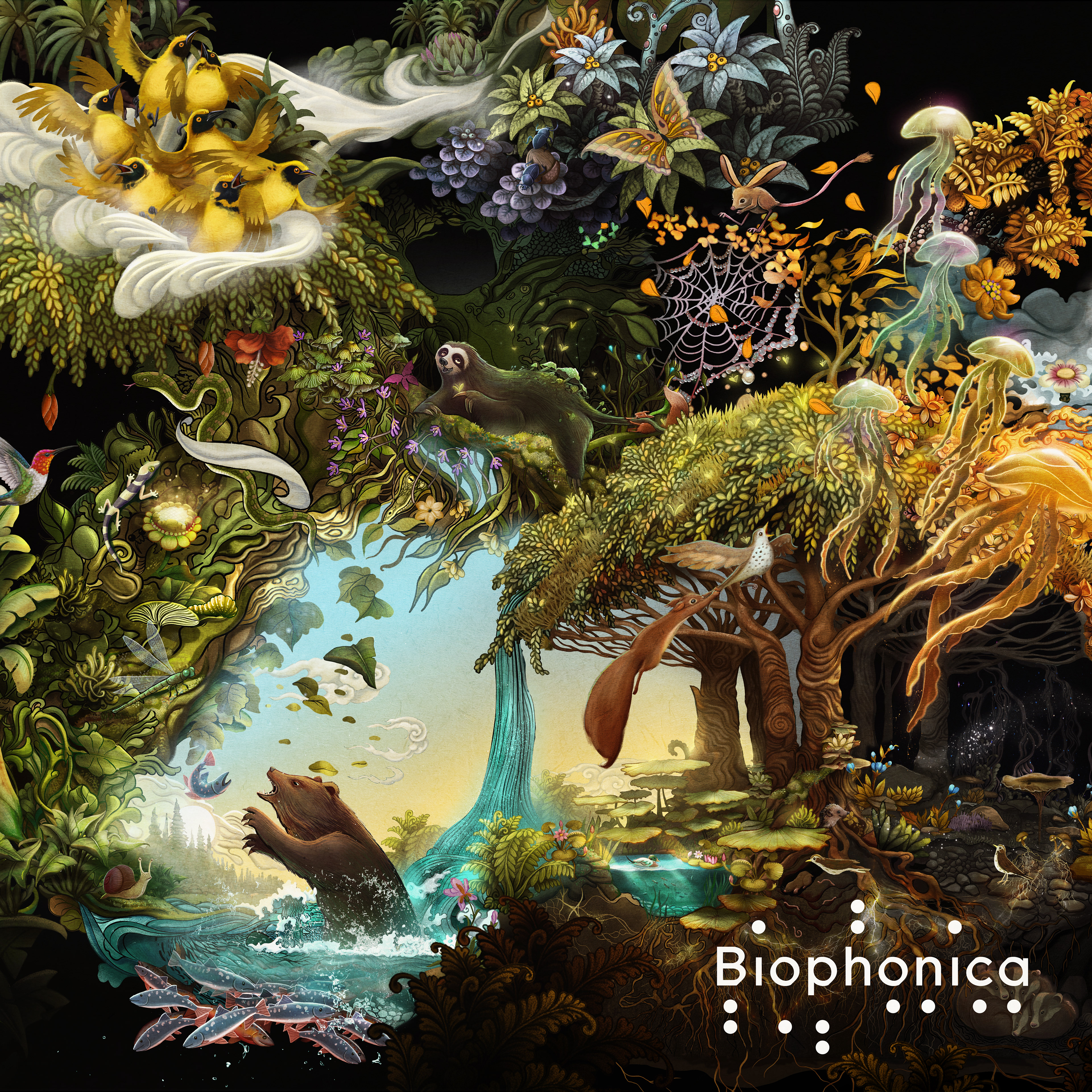 What a privilege it was to design the cover artwork for Biophonica. Just as the album unites voices from across the planet, the artwork was created through collaboration with multiple artists — a seamless piece that mirrors the interconnectedness of all life. Every detail celebrates the intricate web of nature, revealing that together we form something far greater than we can fully comprehend.