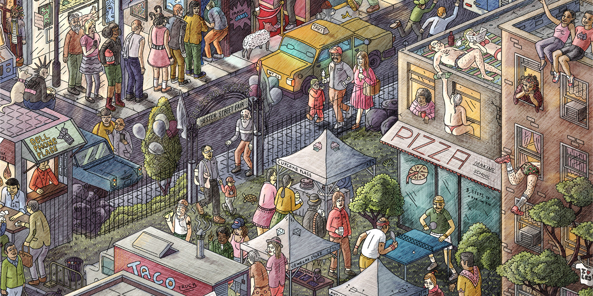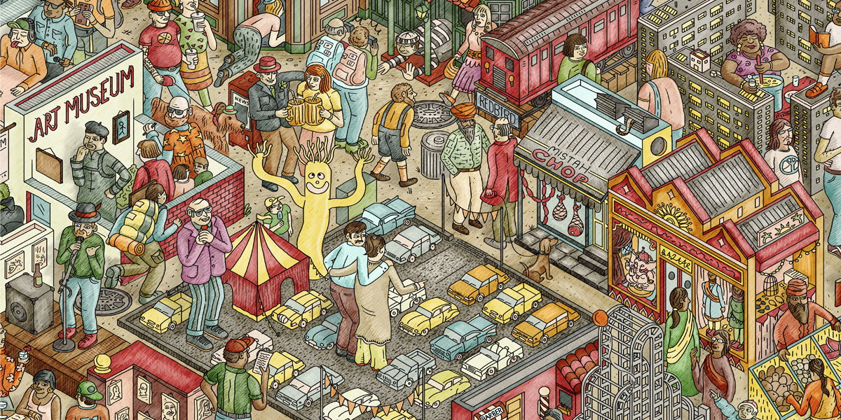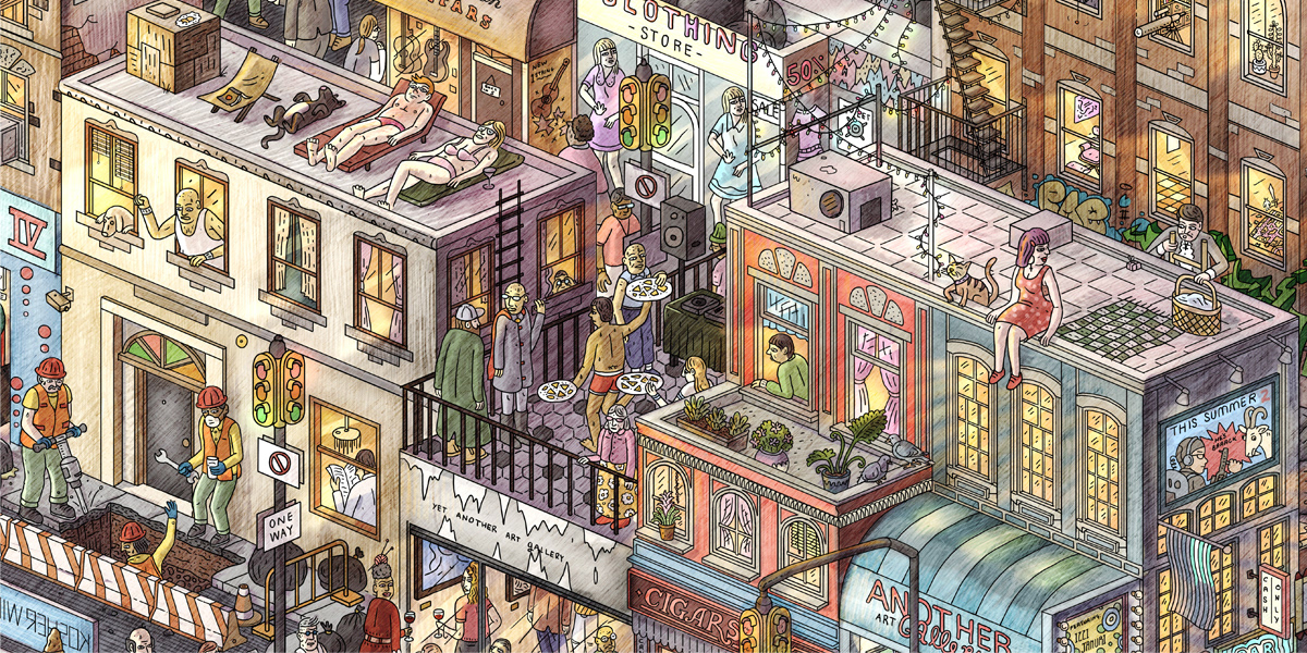 Installed in subway stations we aspired to bring joy to New York commuters with imagined visions of Queens and the Lower East side. We promise that the unbelievably intricate posters will fully absorb you and you can definitely spend hours staring and find a new personality every time!