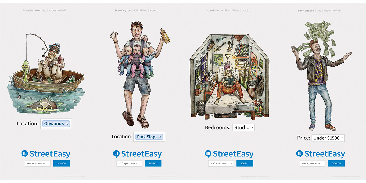 Produced for New York real estate agency StreetEasy, these posters explore the infinite stories that make up New York life and the characters who inhabit them.